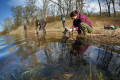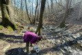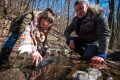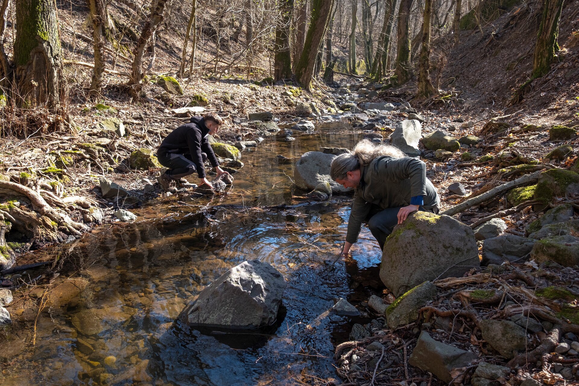 Zsolt és Bálint óvatosan emelgeti a köveket a Bükkös-patakban