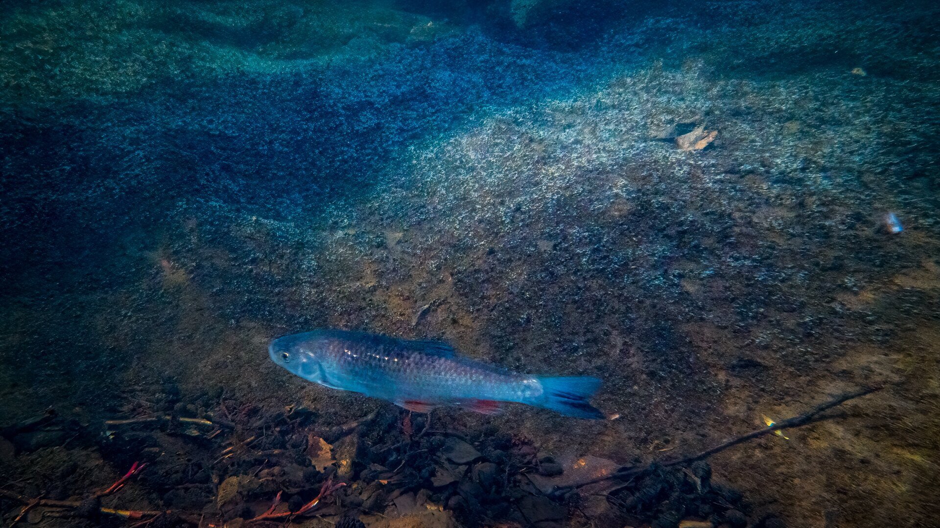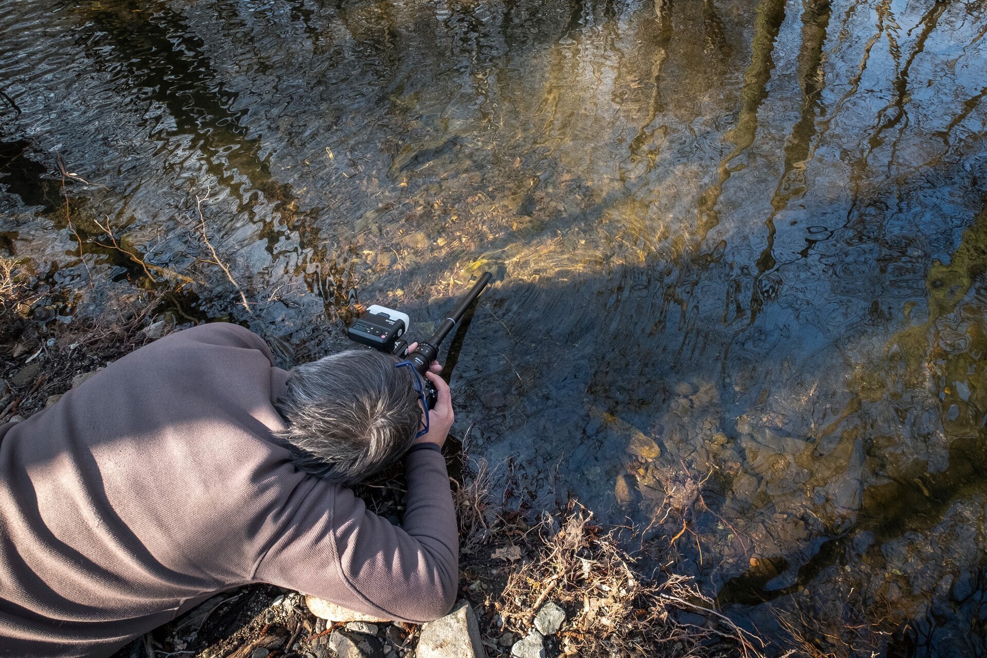 Az egyik patakszakaszon pedig domolykókat fényképezett ezzel az érdekes, puskacsőszerű objektívvel, amelyet a víz alá is lehet meríteni