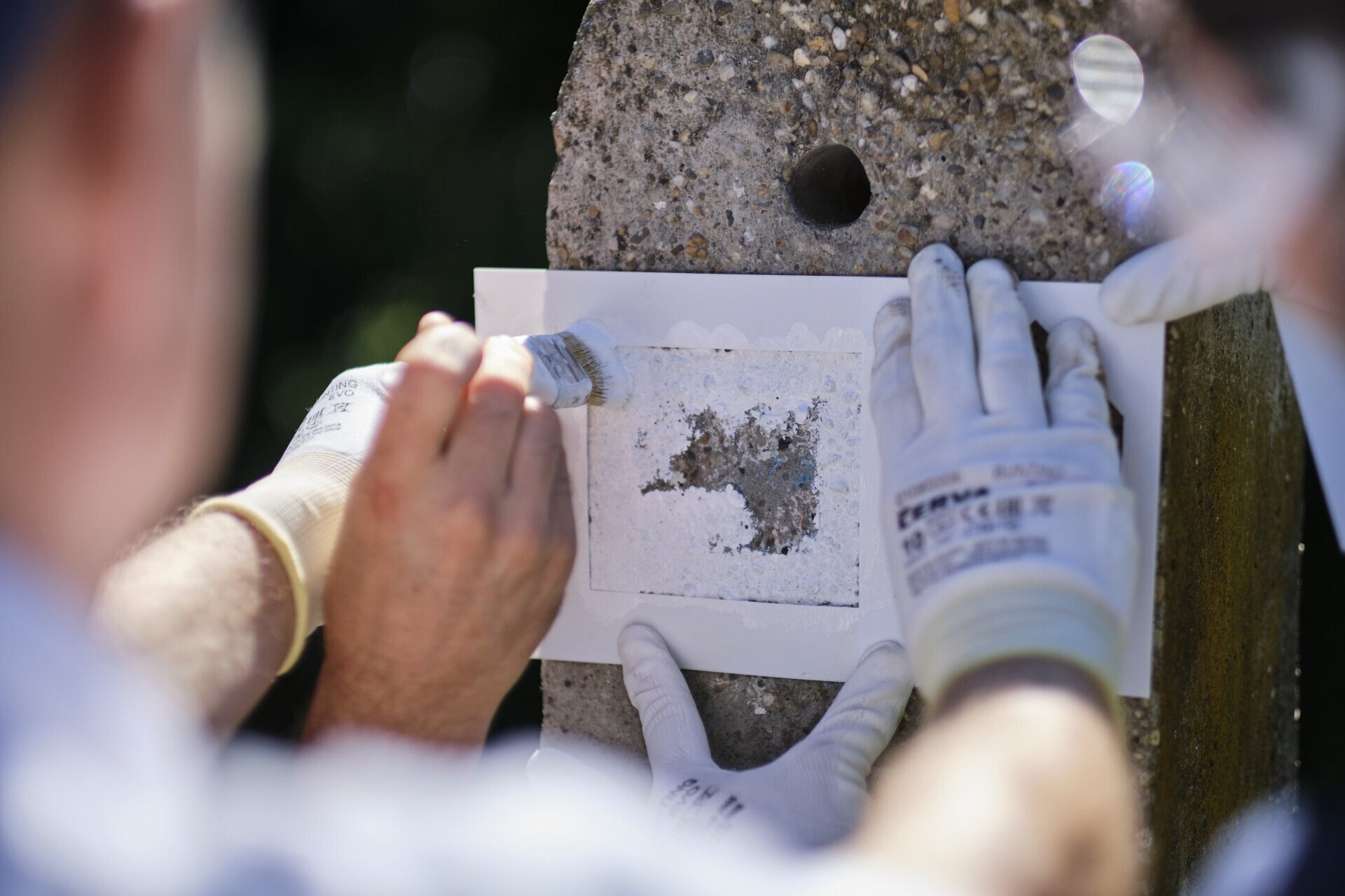 Drótkefével tisztítjukmeg a felületet, illetve távolítjuk el a régi jelzést, amennyire lehetséges