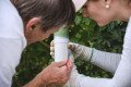 A vízbázisú fehér festéket több üvegbe adagoljuk