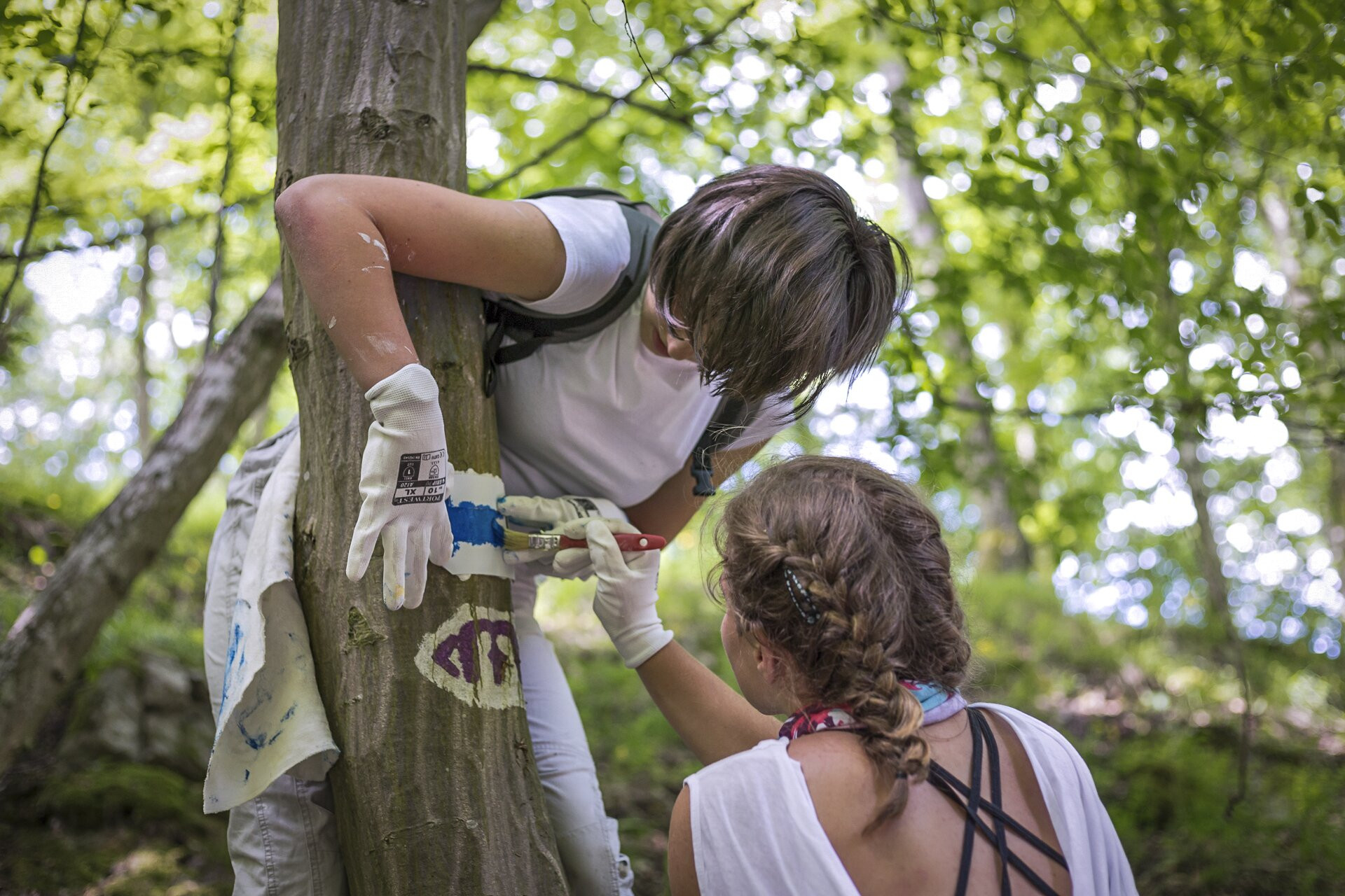 A zöld sáv alatt egy körtúra jelzés látható, ami kirándulóközpontból, közlekedési csomópontból vagy parkolóból, településről kiinduló, jelzésváltás nélkül ugyanoda visszaérkező, 2–10 kilométer hosszú, könnyebb túraútvonalak jelölésére szolgál