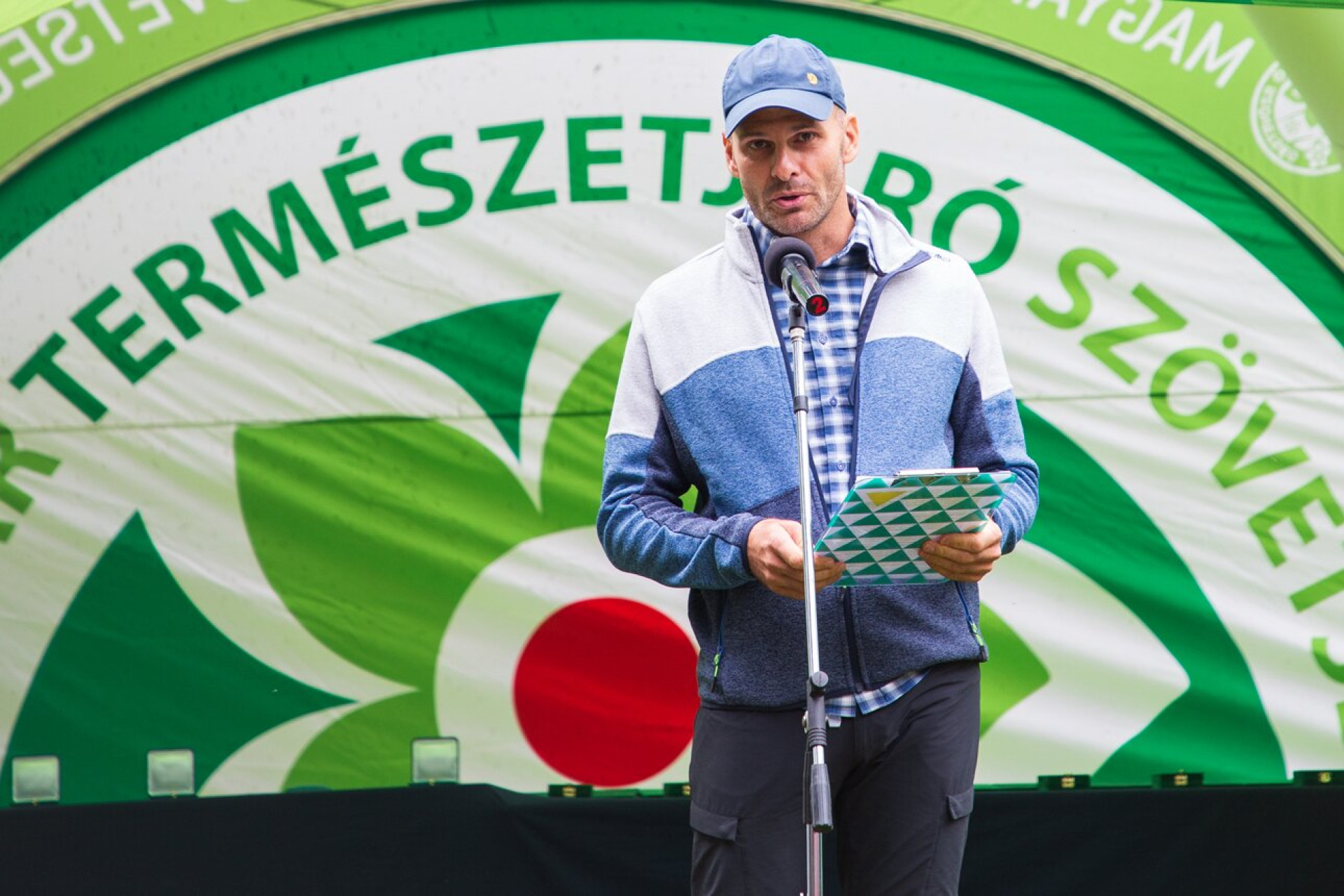 Tassy Márk, az MTSZ igazgatója beszédet mond a Természetjárók Napján