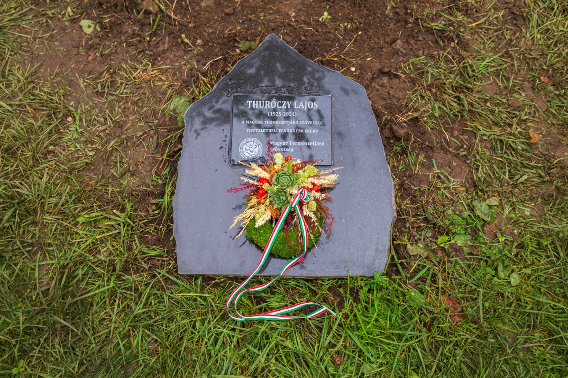 Emléktábla Thuróczy Lajos, az MTSZ egykori tiszteletbeli elnökének emlékfájánál