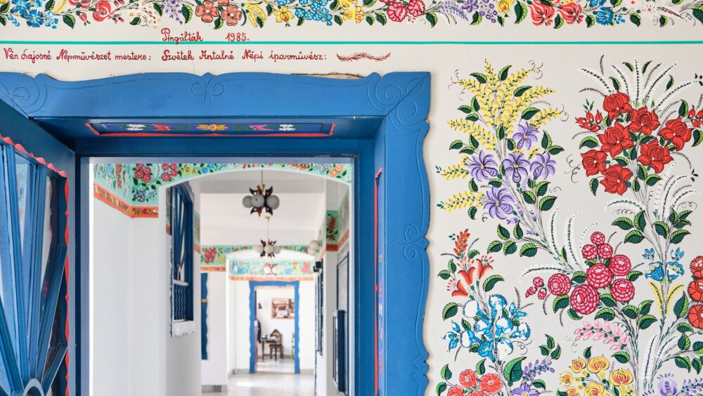 A szoba oldalai mindig hófehérek, a mestergerenda és a padlás sárgára vagy világos vörösre vagy kékre van festve. A szoba falain fölül egy tarkára festett szalag fut körül. E tarka szalag mindig többszínű csíkokkal van szegélyezve. Legáltalánosabb, hogy a széles szalag alapszíne kék, az alatta levő keskeny szalagé vörös, melyen alul zöld-kék vagy csak kék csík van. Az alapszínekre tarka-barka virágok vannak festve. A rózsa és a tulipán sohasem hiányzik, a többi virág különböző a gazdasszony ízlése szerint és változik a divattal.