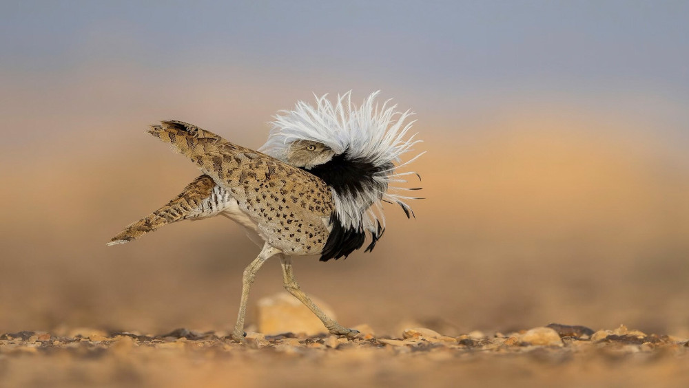 A véres jelenet után jöjjön egy sokkal mókásabb, mégpedig egy pettyes túzoknak köszönhetően, meg persze annak is, aki lencsevégre kapta. Az izraeli Chen Ein-dor fotóján látható hím példány így próbálja magára vonni a tojók figyelmét, hogy miközben szaladgál ide-oda, mellét kidüllesztve és gyönyörű fehér melltollait felfújva kelletti magát. Ezt a képet a Madarak viselkedése kategóriában a harmadik helyezéssel jutalmazták.