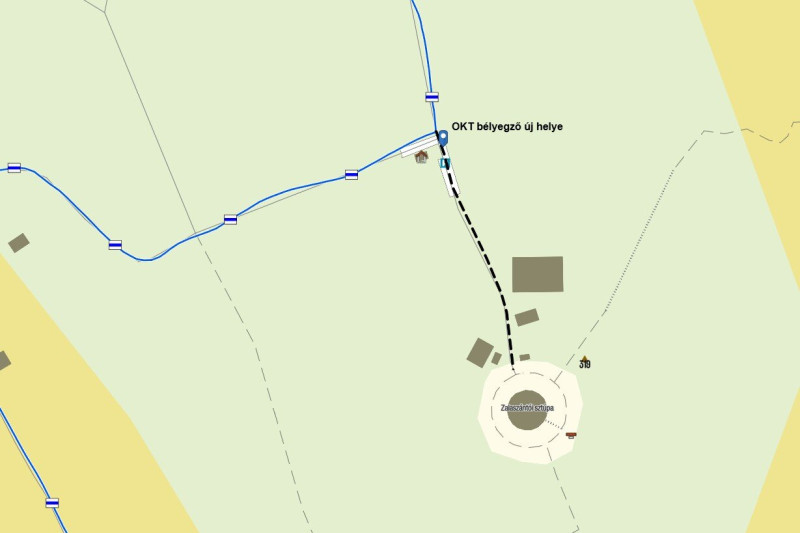 - Az Országos Kéktúra (OKT-03) mellett fekvő zalaszántói sztúpához egy nagyon rövid K rom jelzés vezetett eddig. Mivel itt egy működő szakrális helyről van szó, ezért technikailag nem ez volt a megfelelő jelzés. Az útszakasz nagyon rövid, és a régi rom jelzés sem volt már látható, így hálózatoptimalizás céljából megszüntettük. Jelenleg a K sáv jelzésről most nem vezet turistajelzés a sztúpához, de annak megközelítése továbbra is egyértelmű és zavartalan.