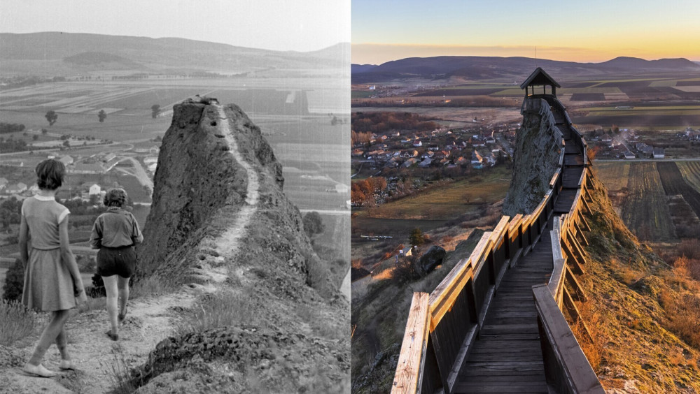 Elődeink is előszeretettel kaptattak fel a látványért, az alábbi képpáron a Szent György-hegy felé nézhetünk ki 1953-ban és napjainkban.